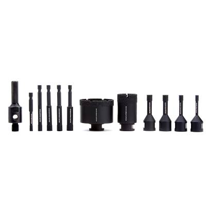 - Coronas de diamante M14: con 15 diámetros de corte diferente (desde diámetro 6 hasta 65). Para uso con amoladora.