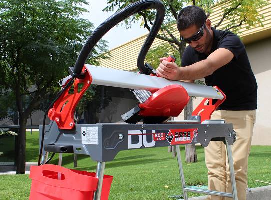 El original diseño de su sistema de drenaje y del depósito de agua garantizan un menor consumo de agua, una óptima refrigeración del disco y una gran facilidad de limpieza, muy apreciada en reformas de espacios de pequeñas dimensiones. Además, sus ruedas integradas en el chasis, completadas con un mango en el lado opuesto, hacen de la DU-200-Evo la máquina más manejable y funcional.