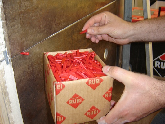 Rubi presenta su gama de crucetas envasadas en cajas de cartón.