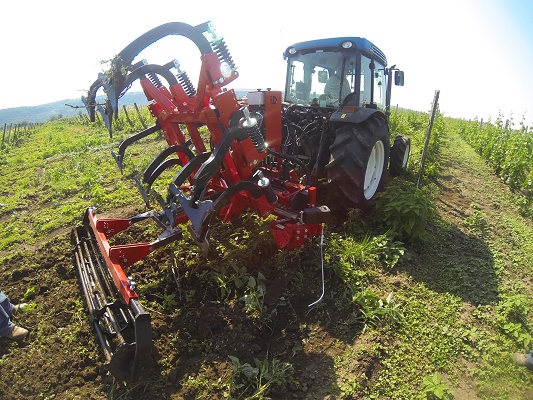 cultivadores combinados Combi son un equipo diseñado para realización de labores mixtas. Cultivo de calles de manera alternativa pero siempre realizando labor entre plantas. Mediante un accionamiento hidráulico permite elevar el cultivador manteniendo los intercepas en su posición de labor y recoger el rodillo para compactar el equipo. Son cultivadores semichisel conectados a 3 puntos traseros de cualquier tractor especialmente diseñados para el control de malas hierbas cuya misión es el desherbaje entre plantas y calle central (fundamentalmente viñedos y frutales) formadas en hileras. Equipan 2 intercepas electrohidráulicos accionados mediante una central hidráulica y una caja de mandos instalada en la cabina de tractor ideado para trabajos alrededor de las plantas incluso de muy pequeño grosor (desde 1 cm de diámetro del tronco) con diferentes herramientas que permiten trabajos tanto de superficie sin removido de tierra como de otros incluso con profundidad de labor de hasta 20 cm controlado por un palpador regulable equipado con sensor inductivo. El sistema posee un sistema exclusivo que combina el desplazamiento paralelográmico con un movimiento radial que confiere una gran precisión a la vez que una gran tolerancia incluso en desviaciones que superen los 30 cm en la alineación de las plantas o en la conducción del tractor en las calles de la plantación.