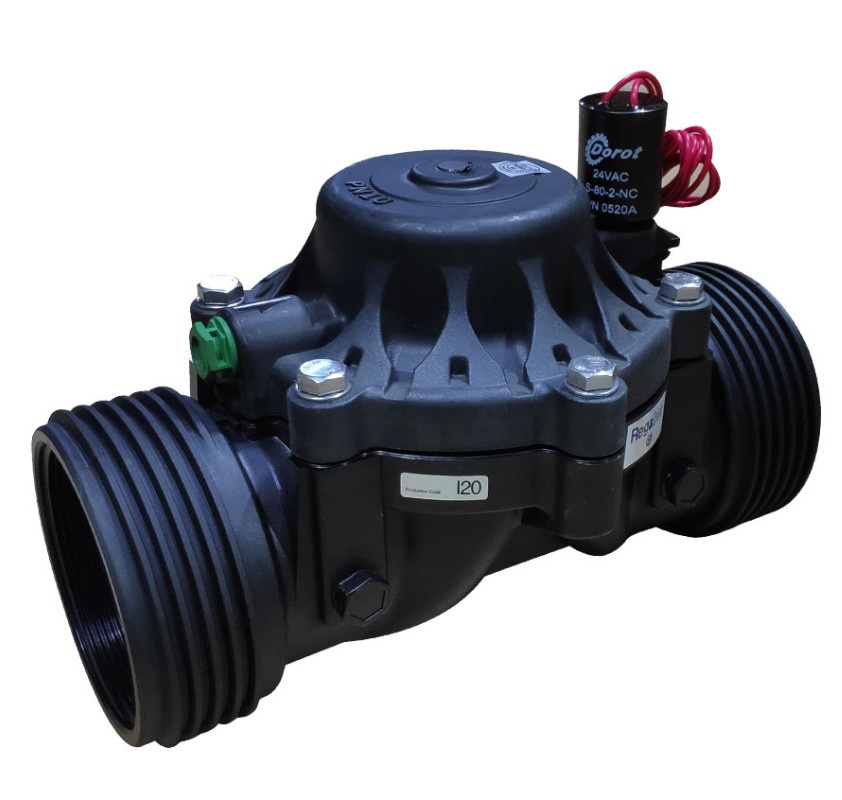 Válvula plástica GALSOL S75, una electroválvula de paso total con un solenoide de 2 vías incorporado en el cuerpo de la válvula. Dispone de diferentes opciones: con un regulador manual de apertura máxima o con un solenoide con dos hilos.
