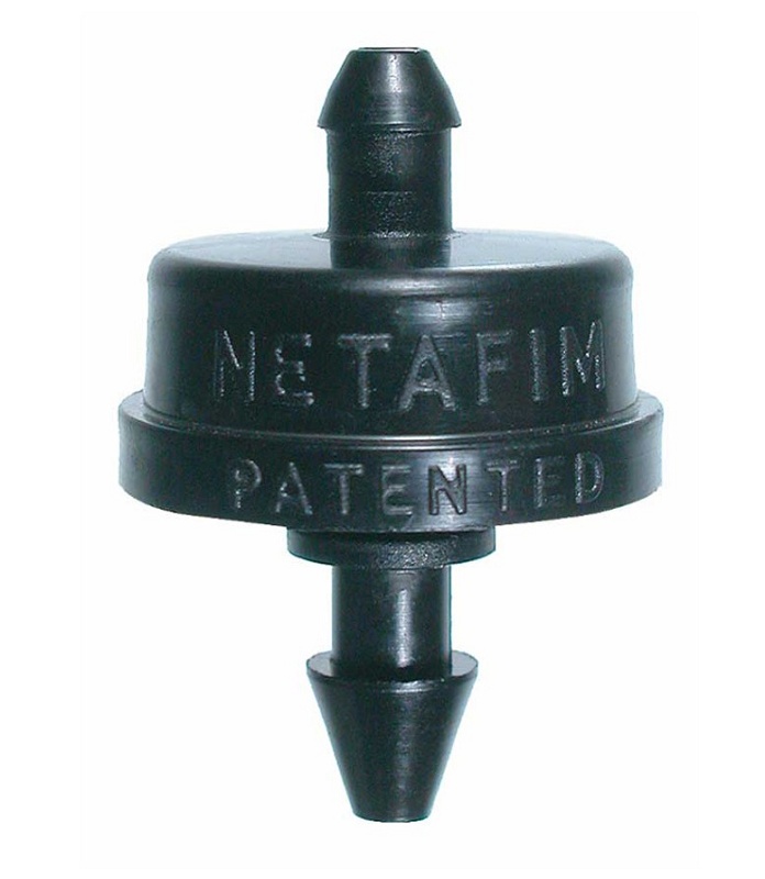 El gotero de botón se basa en el flujo turbulento que se produce a lo largo de un laberinto con amplios pasos de agua, asegurando fiabilidad, precisión y eficacia a la vez que gran uniformidad de caudal y difícil obturación.