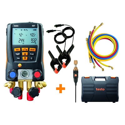 La tecnología de medición tiene que ofrecer bastantes funciones para la puesta en marcha y el servicio de las instalaciones. Testo ofrece los sets de analizadores digitales de refrigeración testo 550 y testo 557 que incluyen mangueras de llenado.