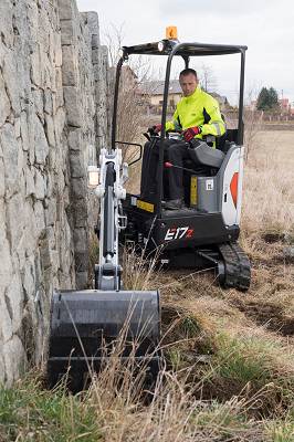 La E17z tiene un peso operativo de 1.749 kg y una profundidad máxima de excavación de 2.249 mm.