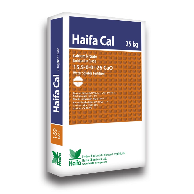 Como el calcio es un elemento poco móvil en la planta, debe ser aplicado de forma continua a lo largo del ciclo del cultivo para mantener unos niveles adecuados en los tejidos de las plantas asegurando un desarrollo adecuado. El nitrógeno nítrico de Haifa-Cal es rápidamente absorbido por la planta mejorando la eficiencia de la asimilación de calcio.