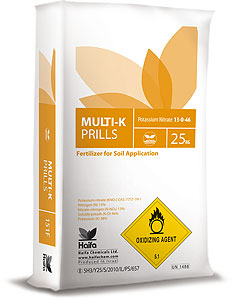 Multi-K Prills es Nitrato Potásico perlado para aplicación al suelo. Se trata de una fuente de potasio excepcional en lo que se refiere a su valor nutricional, su eficiencia y las condiciones de aplicación. Las plantas absorben rápidamente tanto el potasio como el nitrato de forma equilibrada.